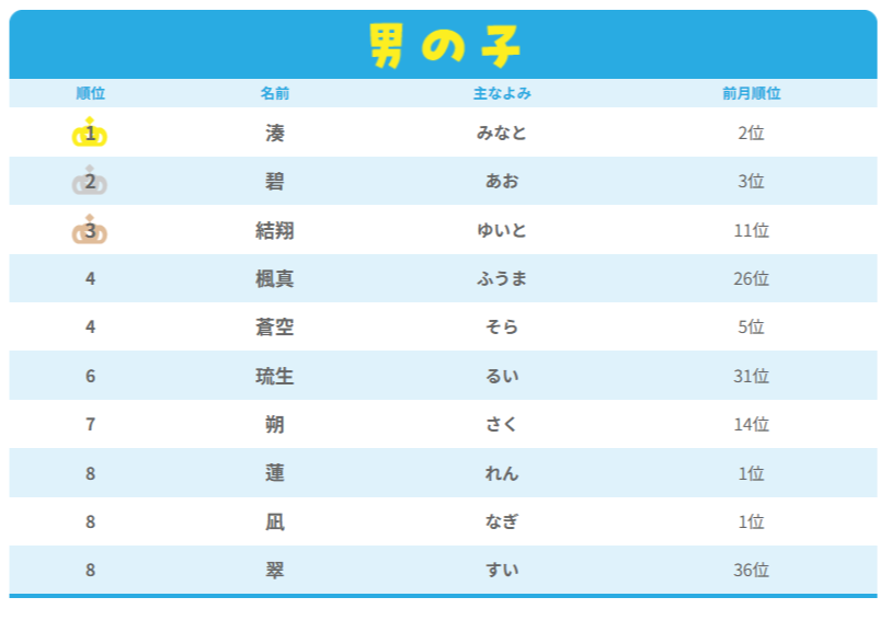 <2025年10月生まれ>男の子の名前ランキング