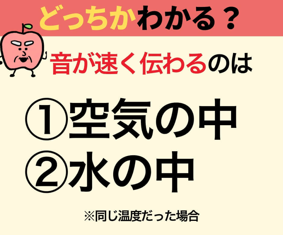 同じ条件(同じくらいの温度)だとして、音が速く伝わるのは次のどちらでしょうか?