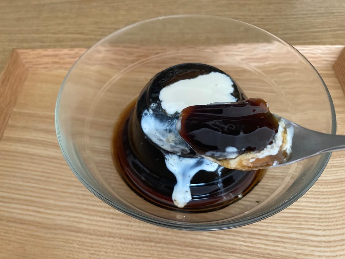 ぷるんぷるんのコーヒーゼリー。ひと口食べた瞬間今まで食べたコーヒーゼリーとは違うと感じるでしょう。