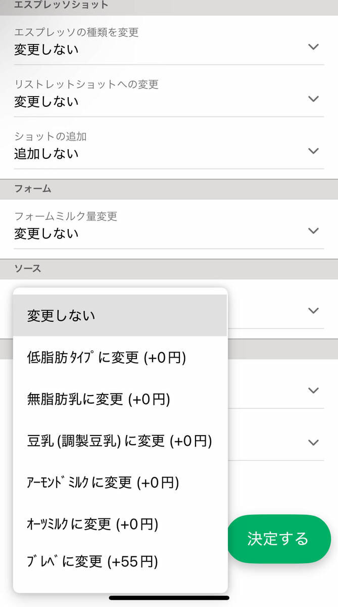 ブレべミルクカスタマイズは+55円!