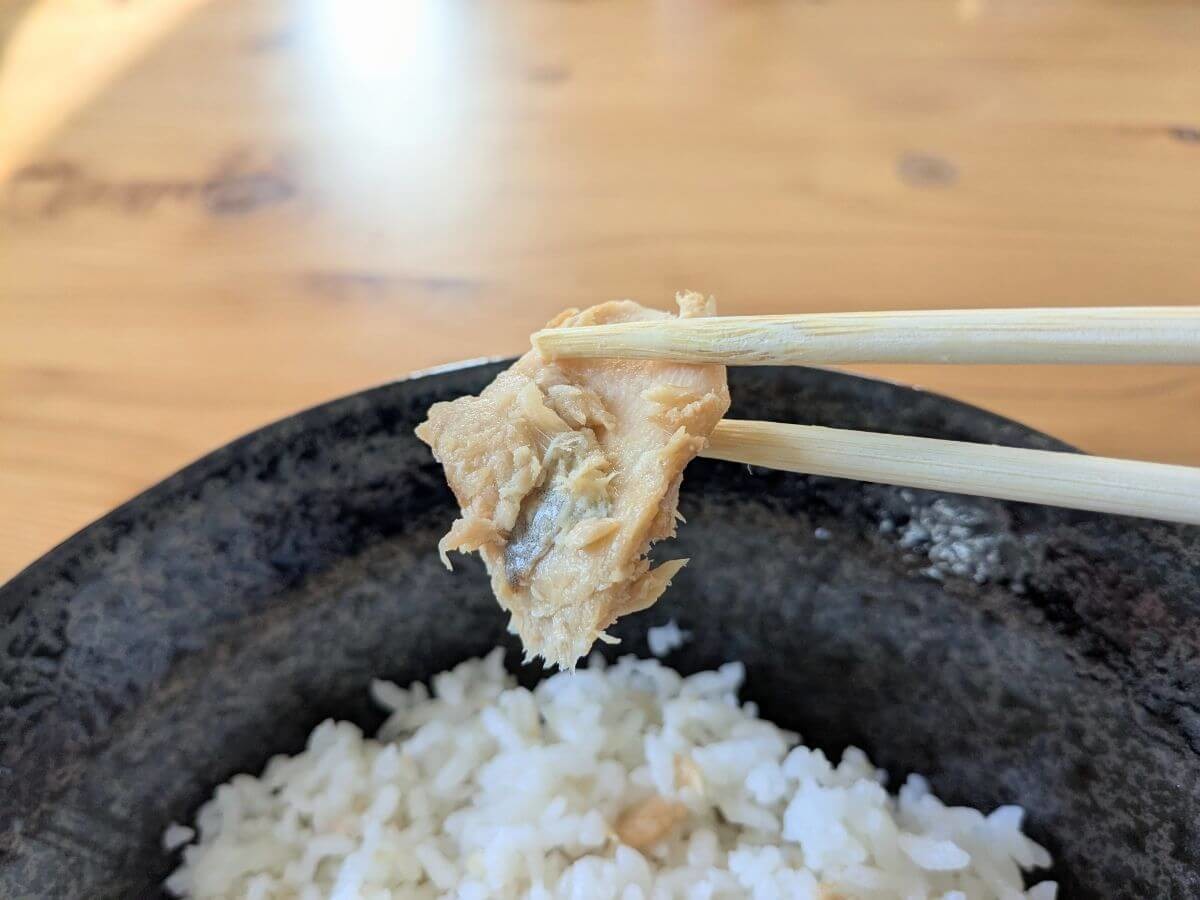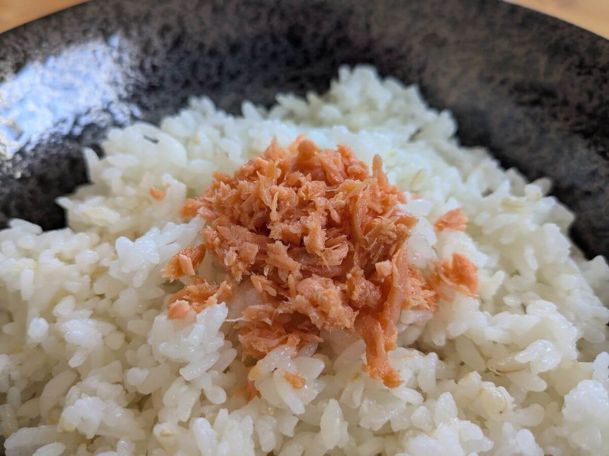 大きめの身も入っており、食べごたえがあります。こちらも塩気は控えめで、噛むほどに鮭の風味が口いっぱいに広がります。