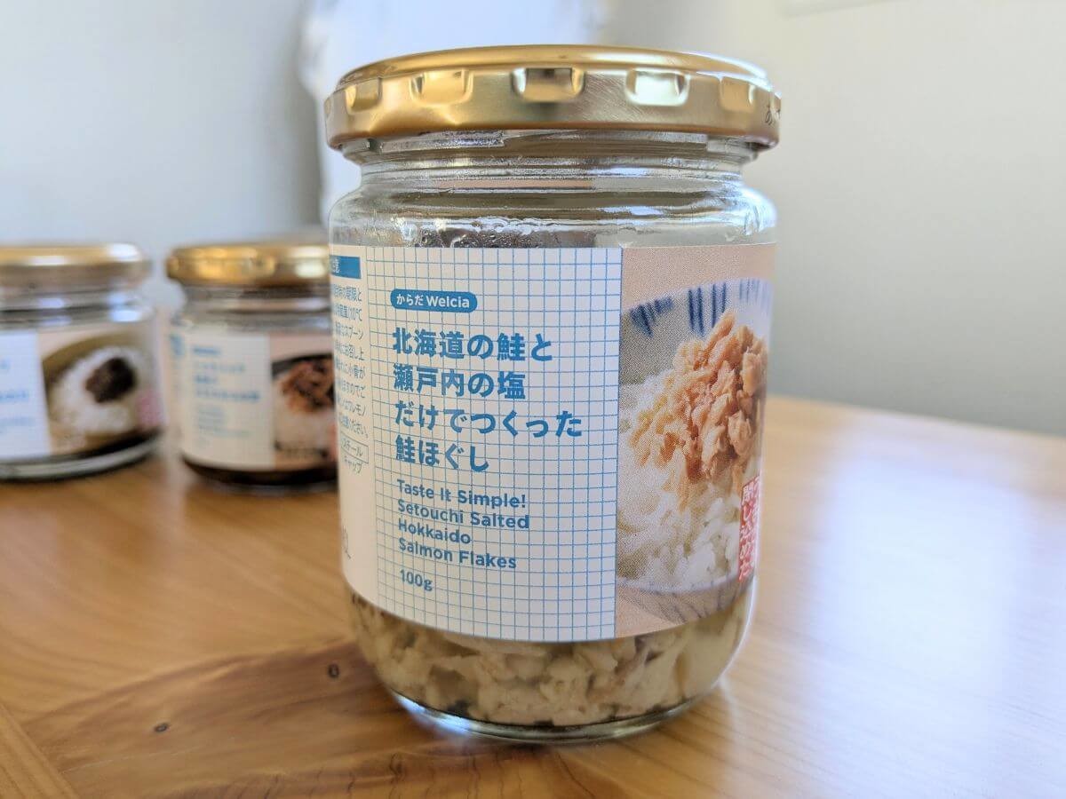 北海道の鮭と瀬戸内の塩だけでつくった鮭ほぐし 100g537円(税込)