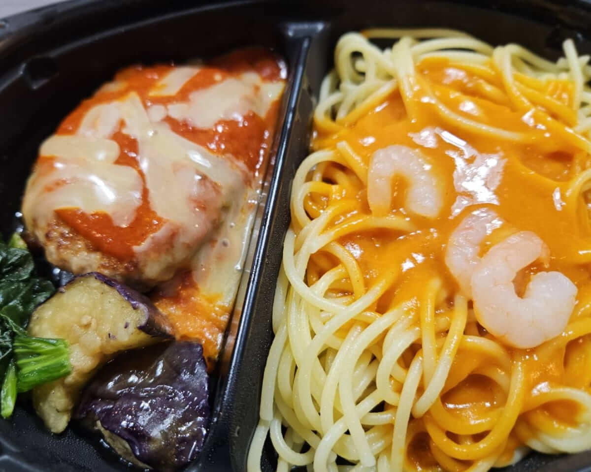 ハンバーグやパスタなど、自分では手間がかかる組み合わせが手軽に楽しめますよ。職場の冷凍庫をこのお弁当で埋め尽くしたくなるほどです。