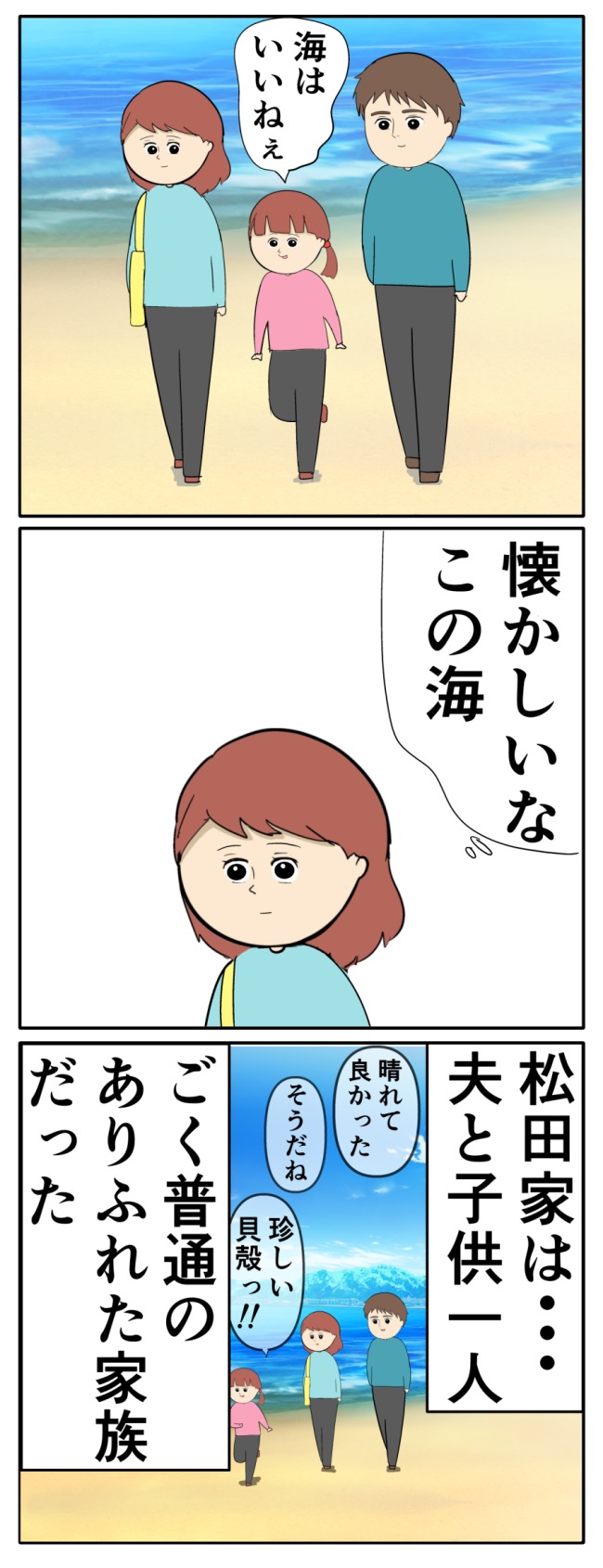 以前も3人で来たことがある海。そのときと家族の形は変わってしまいましたが、めいの中に後悔はありません。離婚に至ったのも、ろみ緒のことを考えれば必然だったのかもしれないと感じていました。
